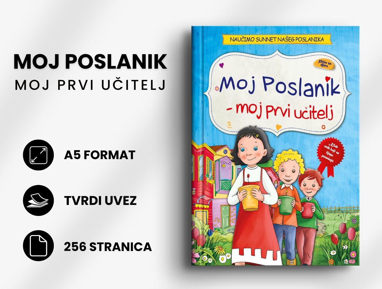 NOVO! Moj Poslanik – moj prvi učitelj. Knjiga u ful koloru za djecu uzrasta od 5 godina i starije. A5 format, 256 str. vatirani povez (tvrdi povez sa sunđerom)
