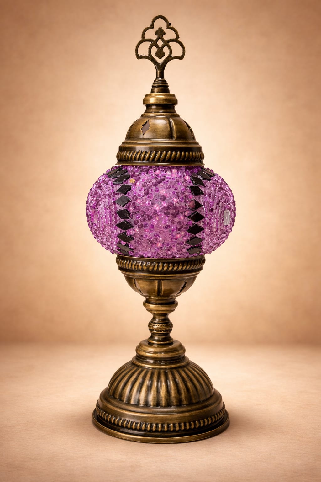 Dekorativna mozaik lampa u ljubičastim tonovima koja unosi toplinu i eleganciju u prostor. Savršen izbor za stvaranje ugodne i opuštajuće atmosfere.